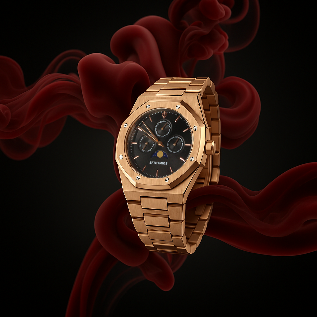 Elke seconde telt. EFTHYMIOS horloges zijn een eerbetoon aan de precisie en elegantie van de Griekse oudheid, gecombineerd met een modern, verfijnd design. Met hoogwaardige materialen en een tijdloos silhouet is dit horloge niet alleen een accessoire, maar een statement van kracht en stijl.